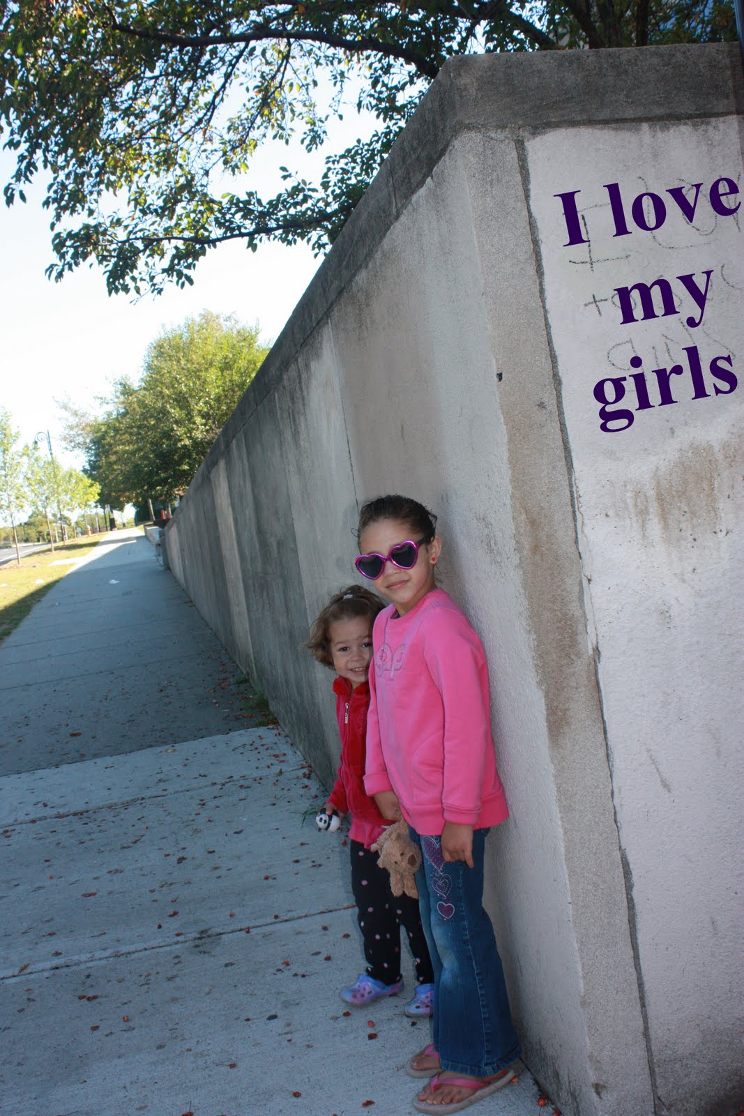 The shoes are all really cool and everytime we drive by them the girls start screaming @ each other "Look, Look there's one" So I thought it would be fun the other day to go for a walk & get the girls out of the house. Since we only live a few minute, walking , from downtown I thought it would be cool to go check out some of the shoes. Usually when we go for walk the girls complain after awhile saying they're tired, so I thought this might entertain them on our walk. It was a success. They had a lot of fun posing next to all of them, until the last couple, I think they actually were getting tired.